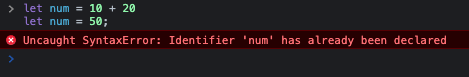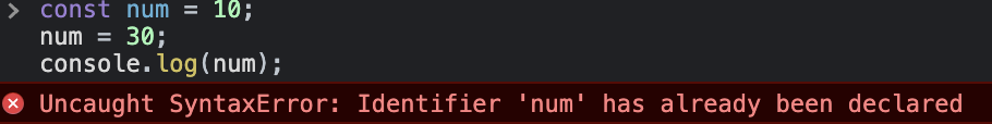 ์ฝ๋๋ฅผ ์คํํ๋ฉด num ์๋ณ์๊ฐ ์ด๋ฏธ ์ ์ธ๋๋ค๋ ์ค๋ฅ ๋ฉ์์ง๊ฐ ๋ฐ์ํ๋ค.