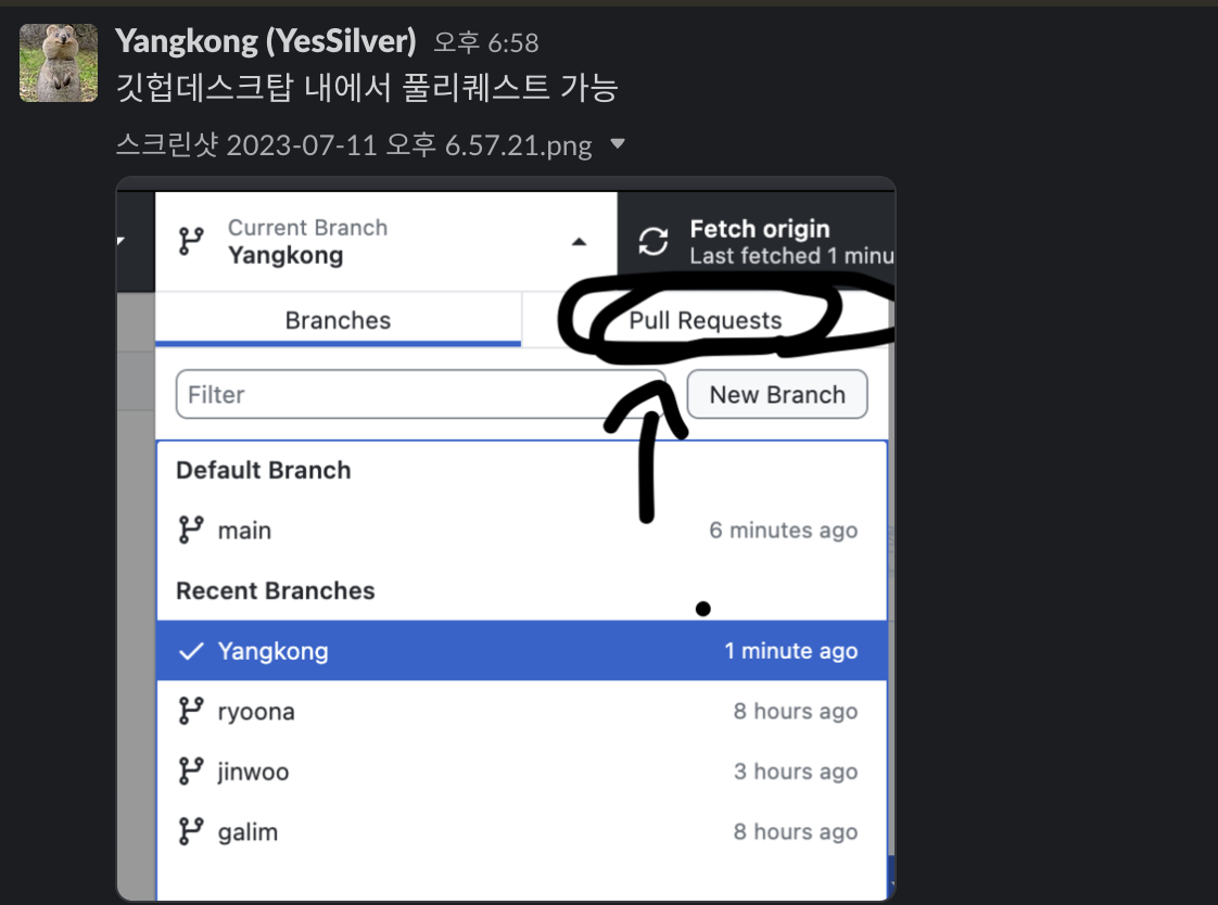 ํ์๋ค์๊ฒ ๊นํ๋ธ๋ฐ์คํฌํ ์ฌ์ฉ๋ฐฉ๋ฒ์ ์๋ ค์คฌ๋ค.